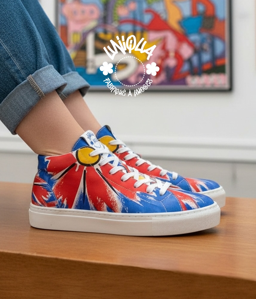 A travers cette collection unique en son genre, partez à la découverte des domaines artistiques de grands artistes de l’Histoire. Embarquez dans un nuage de couleurs avec le talent de Karl Wiener avec la réinterprétation d’une de ses œuvres sur notre Basket Française. Une pièce d’exception pleine d’intensité et d’émotion.