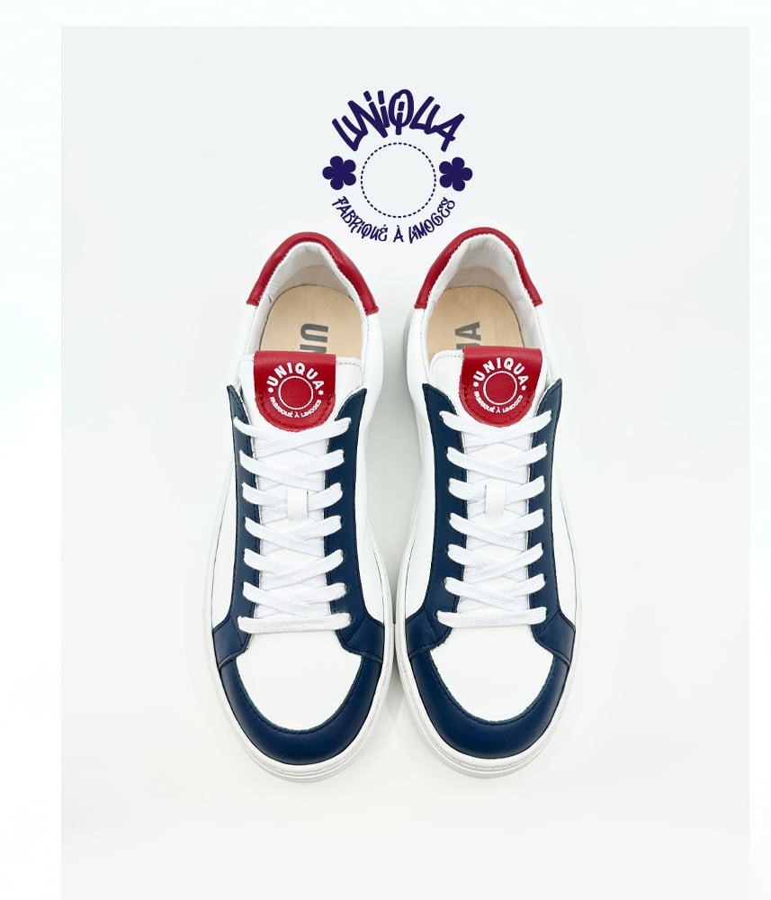 Nous vous proposons notre basket ORSAY avec cette version Marine / Blanc / Rouge.