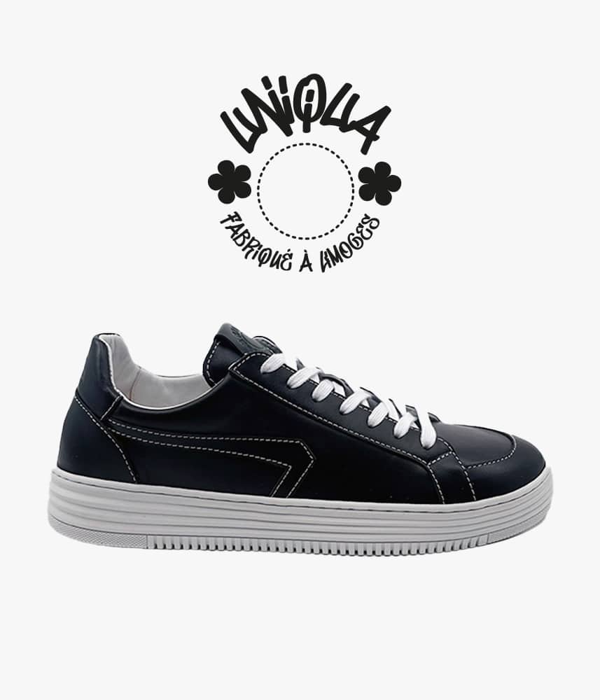 Nous vous proposons notre basket ORSAY avec cette version sobre et élégante en noir avec une surpiqure blanche.