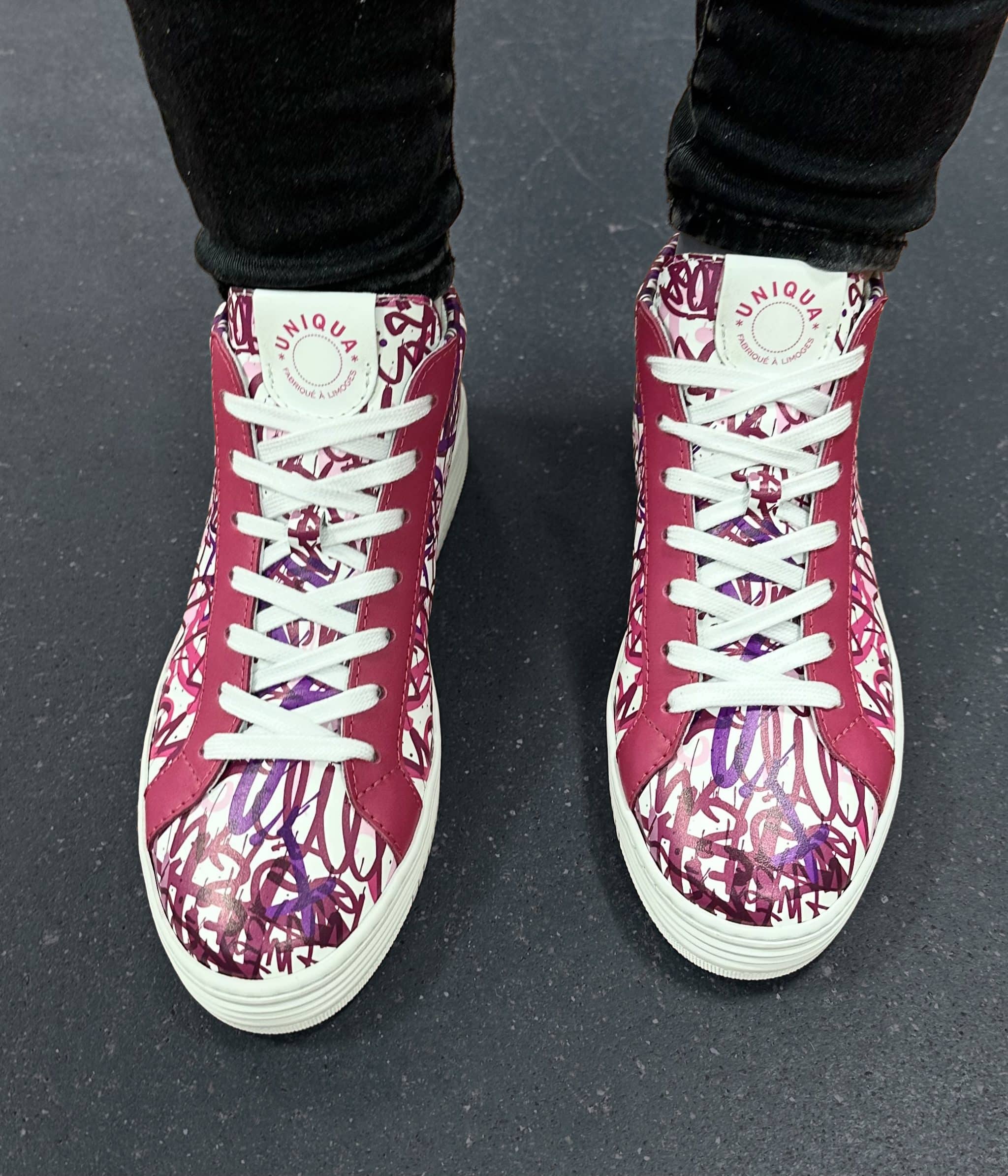 Nous vous proposons notre basket BELLEGARDE avec cette version utilisant notre motif Multi Tag en coloris Fuschia agrémentée de cuir coloris Fuschia.