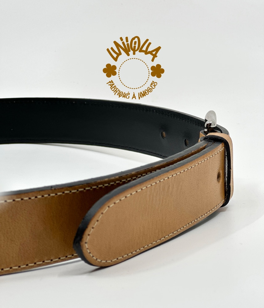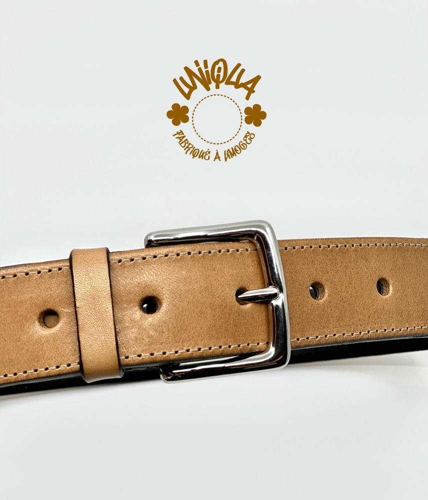 Vous savez que l’on recherche en permanence à se sourcer en local ! Cette vachette Limousine tannée en Limousin et la ceinture fabriquée à Limoges ne peut pas mieux représenter notre région.
